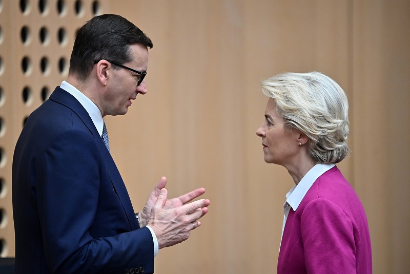 Conversación entre Mateusz Morawiecki, Primer Ministro de Polonia, y Ursula von der Leyen,...